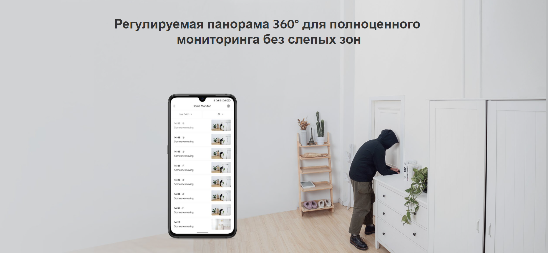 Регулируемая панорама 360° для полноценного мониторинга без слепых зон
