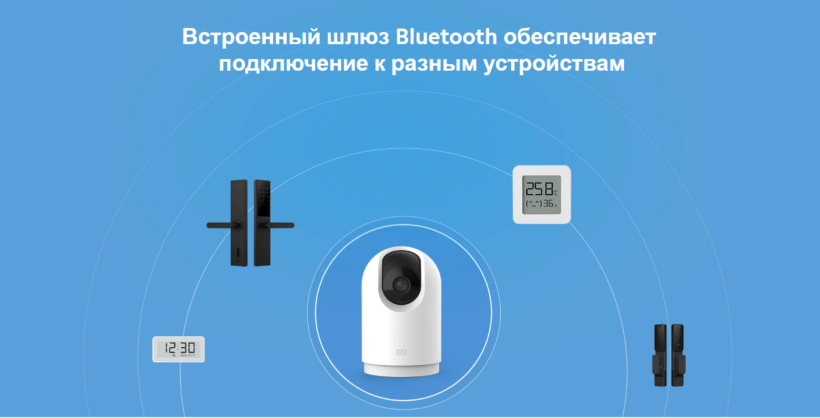 Mi Security Camera 2K Pro оснащена встроенным шлюзом Bluetooth. Подключайте устройства Bluetooth для просмотра данных устройства через приложение Mi Home. Перейдите в настройки, чтобы выполнить сопряжение устройства с другими умными устройствами Xiaomi.